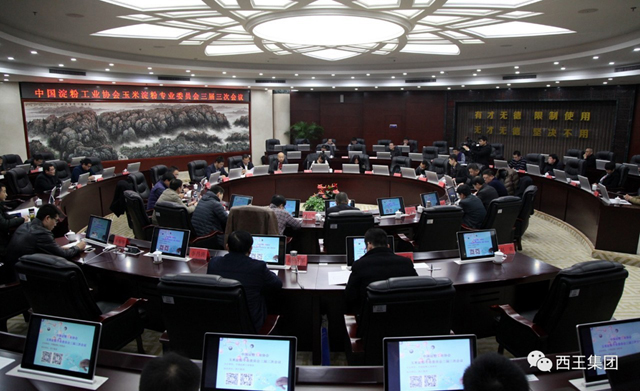 2017年1月10日, 玉米淀粉专业委员会三届三次会议在山东西王集团召开。会议由玉米淀粉专业委员会主任纪建平主持, 副会长、西王糖业公司总经理吉小兵和 秘书长魏旭明到会并致辞。参加此次会议的有玉米淀粉专业委员会理事单位40多人,此次会议得到了西王糖业公司的大力支持!