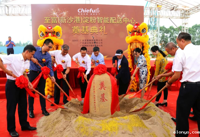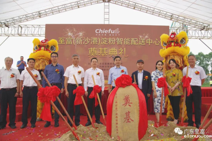 狮跃福采,旌鼓激扬,在领导、嘉宾的共同见证下,“至富(新沙港)淀粉智能配送中心”奠基典礼取得圆满成功!