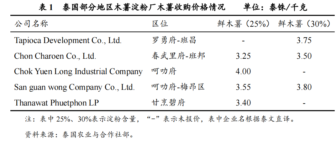 (一)泰国鲜薯收购价格持续小幅上涨